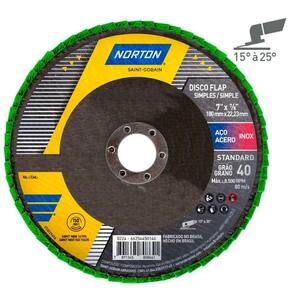Produto: Disco de lixa flap disc côncavo 7" fibra - Standard Marca: Norton Grão: 40Descrição: O Disco de Lixa Flap Disc Côncavo 4.1/2" da Norton foi especiamente projetado para oferecer uma experiência superior em desbaste e preparação de superfícies, ideal para profissionais exigentes. Composto por aletas de lixa duráveis com costado de tecido e grão de óxido de alumínio, o Disco de Lixa Flap Disc Côncavo da Norton se destaca na categoria de entrada por sua performance notável. Se você busca resultados profissionais em manutenção e pequenos reparos, este é o produto que você precisa. Indicações do uso: Ideal para metais, aço carbono, e aço inoxidável. Especialmente desenvolvido para processos como remoção e nivelamento de superfícies, além de preparação para pintura. Alto rendimento, garantindo uma remoção eficaz do material com menos trocas de disco. Design côncavo, que proporciona um contato otimizado com a superfície de trabalho, aumentando a uniformidade e a qualidade do acabamento.Especificações: Medida: 7 " 180mm Diâmetro do furo: 22,23 mmCostado em fibraFormato: cônico.