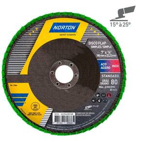Produto: Disco de lixa flap disc côncavo 7" fibra - Standard Marca: Norton Grão: 80Descrição: O Disco de Lixa Flap Disc Côncavo 4.1/2" da Norton foi especiamente projetado para oferecer uma experiência superior em desbaste e preparação de superfícies, ideal para profissionais exigentes. Composto por aletas de lixa duráveis com costado de tecido e grão de óxido de alumínio, o Disco de Lixa Flap Disc Côncavo da Norton se destaca na categoria de entrada por sua performance notável. Se você busca resultados profissionais em manutenção e pequenos reparos, este é o produto que você precisa. Indicações do uso: Ideal para metais, aço carbono, e aço inoxidável. Especialmente desenvolvido para processos como remoção e nivelamento de superfícies, além de preparação para pintura. Alto rendimento, garantindo uma remoção eficaz do material com menos trocas de disco. Design côncavo, que proporciona um contato otimizado com a superfície de trabalho, aumentando a uniformidade e a qualidade do acabamento.Especificações: Medida: 7 " 180mm Diâmetro do furo: 22,23 mmCostado em fibraFormato: cônico. Ean: 7891345813126