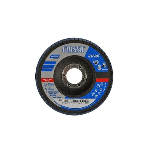 Disco tipo Flap - Flap Disc desbastam e dão acabamento ao mesmo tempo, eliminando a trocas de discos em trabalhos que exijam as duas operações, é destinada ao usuário geral, com boa performance destinado a aço, metal e inox. O Flap Disc é composto pela lixa R822, feita de grão abrasivo óxido de alumínio zirconado Norzon, com sistema de adesivo de resina fenólica e costado de algodão. Os pedaços de lixa estão colados em um suporte plástico. Linha Classic Grão 80 RPM 13300 - 80 m/s. Dimensões do disco: Diâmetro: 4.1/2 115 mm Furo: 7/8 22,23 mm