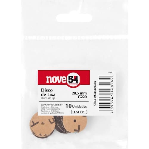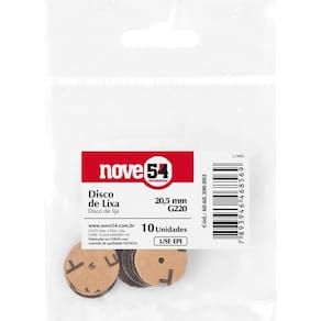 Disco De Lixa Para Microrretífica 20,5Mm G220 10 Peças Nove54 Marca: Nove54Conteúdo da Embalagem:1 Pacote com 10 discos de lixaAplicações e dicas de uso:Utilizado em microrretíficas para lixamentos e acabamentosCaracterísticas Técnicas:Diâmetro do disco: 20,5 Diâmetro do furo do disco: 2,00 mm Grão: G 220