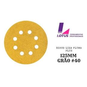 - 10 Discos de Lixa Pluma Lotus Plus Grão #40 125mm.