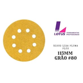 - 10 Discos de Lixa Pluma Lotus Plus Grão #80 115mm.
