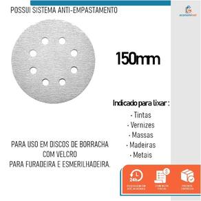 O disco de lixa é ideal para se usar com discos de borracha, furadeira e esmerilhadeira. Produzido em lixa abrasiva com pluma é indicado para lixar massa, tintas, vernizes, metais e madeira. Características técnicas: