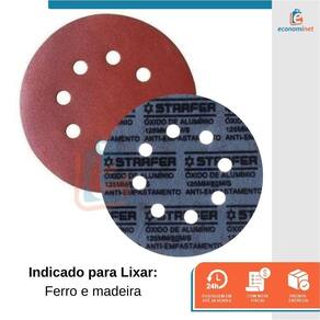 O disco de lixa é ideal para se usar com discos de borracha, furadeira e esmerilhadeira. Produzido em lixa abrasiva com pluma indicado para lixar ferro e madeira. Características técnicas: material: resina, óxido de alumínio, papel e pluma medidas: 125mm 6 quantidade de furos: 8 limite máxima: 12. 220rpm grão: 150 marca: starfer ref. : 4003357