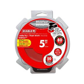Diablo Disco de lixamento ROS de lixamento com suporte StickFast - remoção rápida de material, vida extralonga - 12,7 cm de diâmetro, grão 80, grosso, pacote com 50 - DCD050080P50G