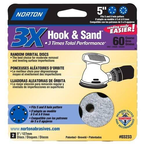 Norton ProSand Multi-Air Cyclonic 5". Disco de lixamento de gancho e laço de cerâmica 60 grãos grossos 2 pk