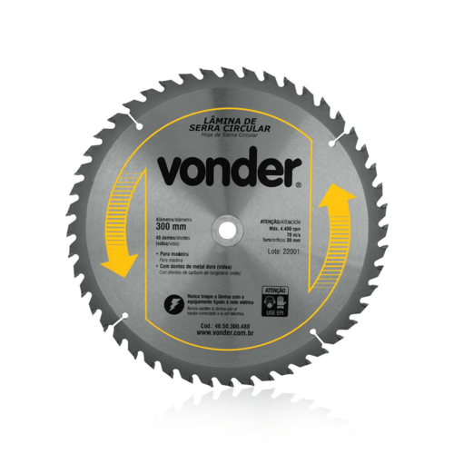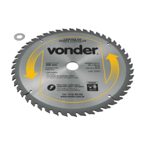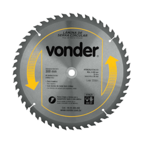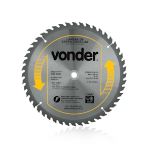 Importante: Nunca exceder a rotação máxima indicada (4.400 rpm) para evitar acidentes ou danos à lâmina. Não utilizar em madeiras impregnadas com massa ou cimento. Para cortes em MDF, a vida útil da lâmina e o acabamento podem ser reduzidos; a Vonder oferece serras específicas para MDF em seu mix de produtos.