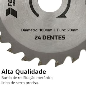 Cortes precisos e eficientes para diversos materiais O Disco de Serra Circular 24 Dentes 20x180mm é ideal para cortes rápidos, precisos e de alta qualidade em madeira, MDF, compensados e outros materiais similares. Com seus 24 dentes, ele garante cortes mais suaves e com menos rebarbas, facilitando o acabamento e reduzindo a necessidade de ajustes posteriores. Produzido com material de alta resistência e lâminas afiadas, o disco oferece excelente durabilidade e mantém seu desempenho mesmo em trabalhos contínuos. Sua estrutura robusta e eficiente proporciona maior controle e precisão nos cortes, tornando o processo mais rápido e prático. A praticidade é outro ponto forte deste disco. Com furo de 20mm e compatibilidade com diversas serras circulares, sua instalação é rápida e simples. Assim, você economiza tempo e aumenta a produtividade em seus projetos de marcenaria, carpintaria e construção civil. DIFERENCIAIS - 24 Dentes Afiados: Cortes mais limpos, precisos e com menos rebarbas. - Alta Durabilidade: Fabricado com material de alta resistência, suporta uso contínuo sem perda de eficiência. - Fácil Instalação e Compatibilidade: Furo de 20mm, compatível com diversas serras circulares do mercado. ESPECIFICAÇÕES TÉCNICAS Diâmetro do Disco: 180mm Quantidade de Dentes: 24 dentes Material: Aço de alta resistência e dentes de metal duro vídea ITENS INCLUSOS 02 Discos de Serra Circular Aumente sua eficiência e a qualidade dos seus cortes com o Disco de Serra Circular 24 Dentes 20x180mm. Garanta cortes precisos, limpos e com acabamento em menos tempo Marca: Não Informado
