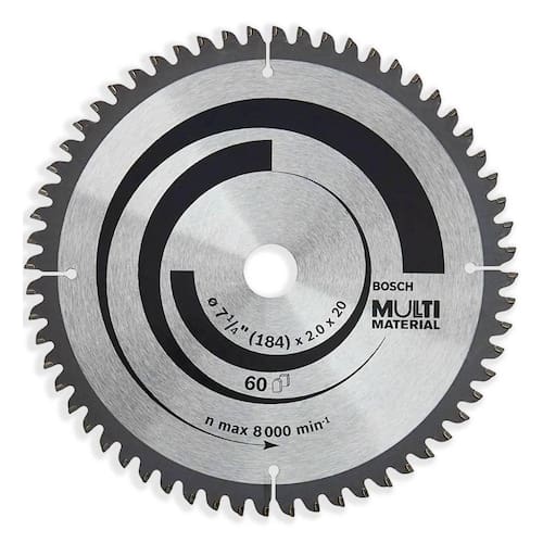 Disco De Serra Circular Multimaterial 184mm x 20mm 60 Dentes Disco de Serra Circular Multimateriais 7-1/4 Pol. - Bosch-2608642193 O disco perfeito para cortes potentes e com arestas limpas nos mais diversos materiais. Corpo e fendas de dilatação que reduzem as vibrações, o ruído e a formação de calor. características: Dentes de metal duro, planos e trapezoidais com ângulo negativo Base do disco com corpo em aço endurecido e temperado Corte fino em madeira dura Corte muito fino em madeira fina e material composto Corte fino em plástico e metais não ferrosos Corte muito fino em plástico e metais não ferrosos Diâmetro externo: 71/4 184mm Diâmetro do furo: 20mm Dentes: 60 Ean: 3165140602006