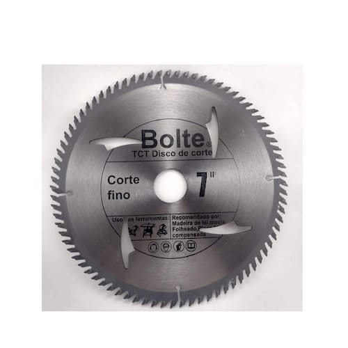 Marca BOLTE 180mm X 254mm 80 dentesUsado para corte de Compensados MDF e Madeiras em geralAcompanha bucha de redução abaixo01 bucha de redução de 254mm para 20mm Características180mm de diâmetro80 dentesEspessura da pastilha 24mm Espessura do disco 15mmFuro de 254mm Marca: Bolte