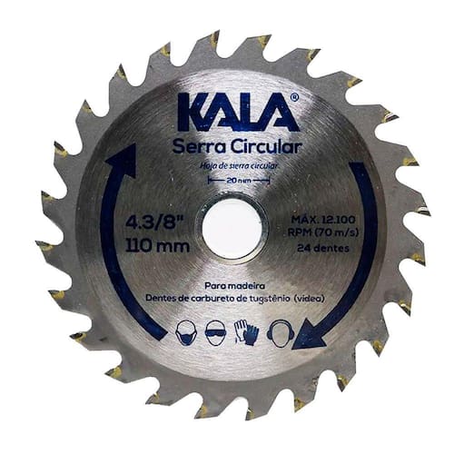 O disco de Serra circular Kala foi desenvolvido em aço carbono temperado para cortes em madeiras. Possui 24 dentes de carbureto de Tugstênio (vídea).