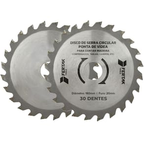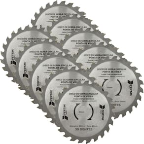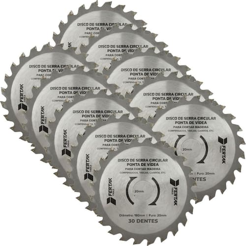 Diâmetro do disco: 180mm. Diâmetro do eixo furo : 20mm. Quantidade de dentes: 30 dentes com ponta de vídea. Material: Corpo de aço de alta resistência com pontas de vídea. Indicado para: Cortes em madeira, MDF, compensados e outros materiais similares.