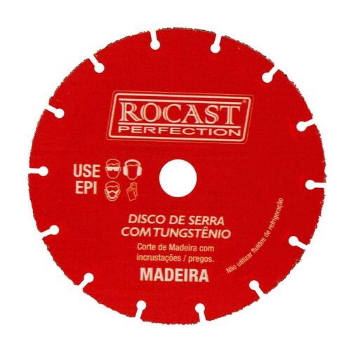 O Disco de Serra Com Tungstênio Para Madeira 115 x 22,23 245,0003 - Rocast, é utilizado em máquinas de corte, como por exemplo a serra mármore, para cortar madeiras Com Incrustações e Pregos, tornando-o ideal para todos os tipos de madeira. Ele é composto por um disco circular de metal com dentes afiados em sua borda, projetados para cortar o material de forma eficiente e precisa.