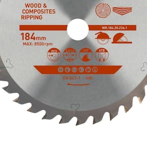 Produto: Disco de serra para madeira 184 x 20 mm 36 dentes - Clipper Marca: Norton Descrição: O Disco de serra para madeira 184 x 20 mm 36 dentes Clipper da Norton é uma solução de alta performance, projetado para operações especializadas em cortes de madeira e compósitos.Este disco é ideal para cortar madeiras duras e macias, bem como painéis de MDF, HDF e OSB. Combinando potência, precisão e durabilidade, o disco oferece um desempenho superior para trabalhos que exigem cortes detalhados e acabamento refinado. Benefícios: • Alta performance: Oferece cortes precisos e eficientes em diversos tipos de madeira e compósitos.• Acabamento impecável: Garante um acabamento suave e uniforme, sem rebarbas.• Durabilidade: Fabricado com materiais de alta qualidade, garantindo maior vida útil.• Versatilidade: Ideal para uma ampla variedade de aplicações.Especificações: Diâmetro: 184mm;Número de dentes: 36;Furo central: 20mm;Espessura do corte: 2,2mm;Espessura da base: 1,4mm;Tipo de dente: ATB;RPM máximo: 8500.Itens Inclusos: Bucha de redução para 16mm. Marca: Não Informado Ean: 5450248789901