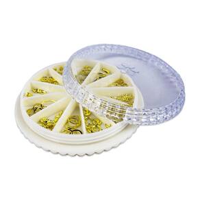 Características Principais: - Disco com 12 divisórias contendo 12 tipos diferentes de peças; - Material durável e resistente; - Efeito visual de destaque nas unhas; - Combinação personalizada desde estilos mais delicados até os mais ousados; - Fácil aplicação; - Versátil; - Ideal para ocasiões especiais como casamentos ou festas de fim de ano; - Tamanho compacto; - Para uso em salão ou em casa.