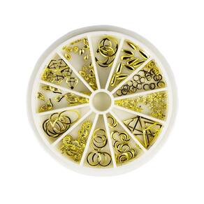 Contém: 01 - Disco com peças 3D douradas para decoração de unhas