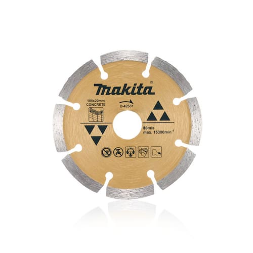 Disco diamantado 105 x 20 mm SE GM D-42531Maior camada diamantada aumentando a produtividade, corte mais rápido e fácilCorte seco ou água, trazendo maior versatilidadeUtilizado em granitos, mármores, produtos cerâmicos, tijolos de construção, pedras em geralFuro: 20 mmDiâmetro: 105 mmVelocidade: 15.300 RPMAcompanha anel de redução 16 mmMarca: MAKITARef.: MAKITA-D-42531Imagens meramente ilustrativasTodas as informações divulgadas são de responsabilidade do Fabricante/Fornecedor.