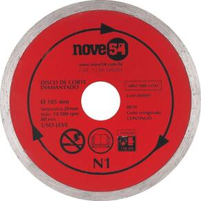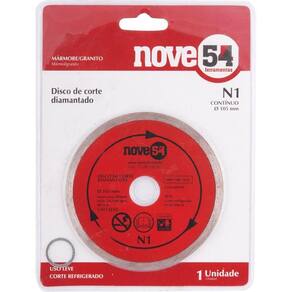 Disco Diamantado 105mm Contínuo Furo 20mm N1 - Nove54 Conteúdo da embalagem 1 Disco de corte diamantado Aplicações e dicas de uso Indicado para cortar mármore, granito e cerâmica Destaques e diferenciais Acompanha bucha de redução de 20 mm para 16 mm DETALHES TÉCNICOS