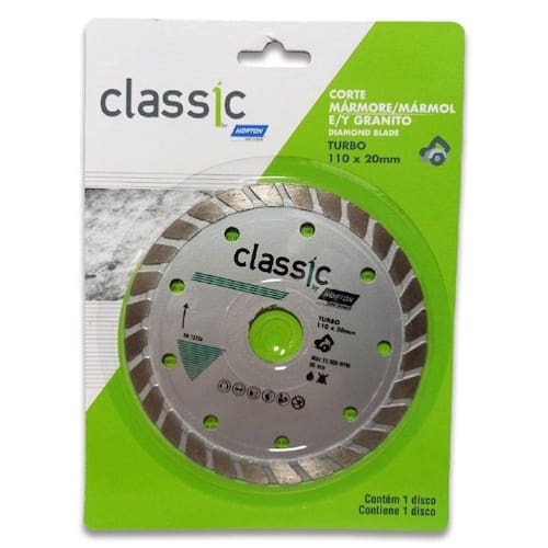 Indicado para operações simples do dia a dia, o disco diamantado Classic turbo é ideal para corte de mármores, granitos e pedras decorativas.