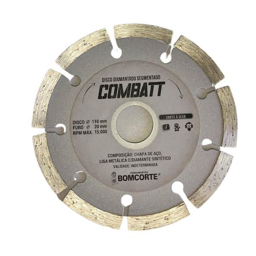 Especificações técnicas: :: composição: chapa de aço, liga metálica com diamante sintético; :: dimensões: disco 110mm - furo 20mm; :: rpm máx.: 15.000;