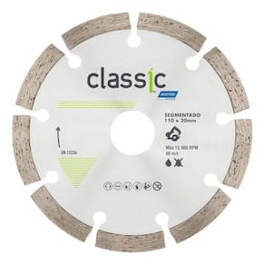 Dados Técnicos: - Modelo: Classic Segmentado - Referência: 70184647065 - Diâmetro externo: 110mm - Encaixe/furo: 22,23mm - Uso em esmerilhadeira - Utilização úmido e a seco