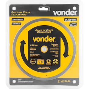 Especialmente indicado para cortar porcelanatos e cerâmicas duras. Utilizado em cortadores de cerâmicas e porcelanatos compatíveis com o diâmetro e furo do disco. Velocidade periférica máxima: 80 m/s.