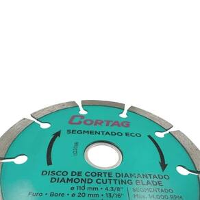 Características técnicasO Disco Diamantado Segmentado ECO CORTAG se destaca por unir tecnologia e simplicidade em um único produto. Seu desenvolvimento considera as necessidades reais do dia a dia do profissional da construção, oferecendo uma ferramenta confiável para tarefas recorrentes como abertura de canaletas, cortes estruturais e ajustes em peças de concreto.