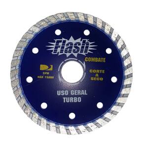Turbo: corte refrigerado e a seco de mármores, granitos, telhas de fibrocimento, alvenaria e pedras decorativas Para uso geral Corte a seco Linha: Econômica Flash Combate Diâmetro do furo: 20mm Diâmetro do disco: 110mm Rotação máxima: 15.000 Cor: Azul Resistente e durável Marca: Diametalic