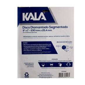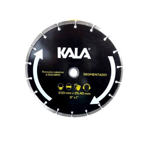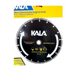 Disco Diamantado Segmentado Indicado Para corte de Alvenaria concreto, rebocos , refratários, basalto e tijolos Corte Seco ou refrigerado com água. Marca: Kala Furo: 1 Polegada 25,4mm Diâmetro da Serra: 9 Polegada 230mm Ean: 7899956602962
