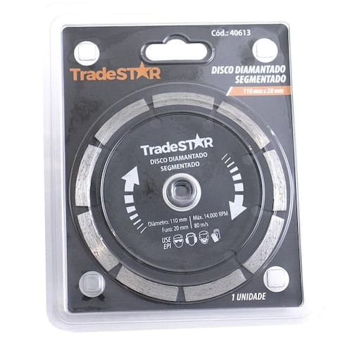 Disco Diamantado Segmentado Para Concreto Tijolo Lajota 110X20 Disco diamantado segmentado 110x20 mm - ideal para cortes precisos em materiais como concreto, cerâmica, pedras naturais e artificiais. Seus segmentos proporcionam um corte rápido e eficiente, sem danificar o material. Compatível com diversas máquinas de corte, possui uma fixação segura e fácil de ser instalado. Garanta agora um trabalho de qualidade com o disco diamantado segmentado 110x20 mm.