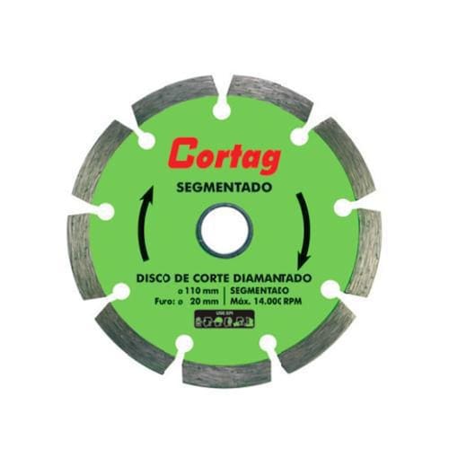 Disco Diamantado Segmentado 110mmx20mm Cortag Um Excelente Disco Diamantado Da Cortag, Foi Desenvolvido De Acordo Com Os Padrões Técnicos Mais Avançados, Garantindo Versatilidade E Menor Custo Por Metro Cortado. Seu Corte É Eficaz E Satisfatório. Possui Alta Performance E Resistência. É Ideal Para Uso Em Concreto, Alvenaria E Bloco De Concreto. Características Técnicas Do Disco Diamantado Cortag: - Perfil: Segmentado - Tipo De Corte: Seco - Ø Externo: 110mm - Ø Furo: 20mm - Rpm Máxima: 14.000 - Bucha De Redução: 16 - Peso: 0,110kg Marca: Não Informado