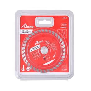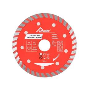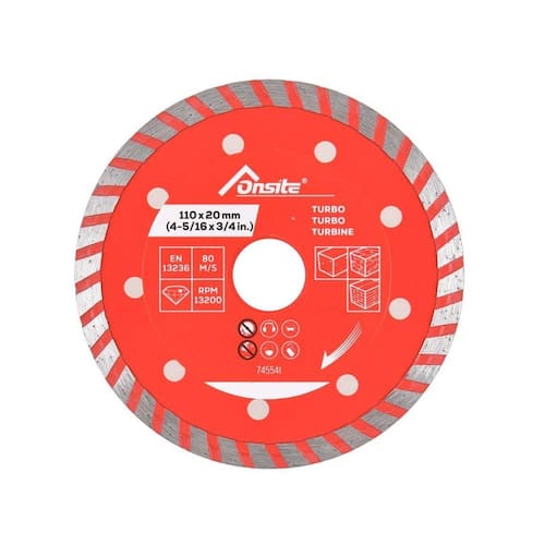 O Disco Diamantado Turbo 110mm x 5/16'' x 22.23mm / 20mm 745541 - Onsite, com anel de redução é ideal para cortes rápidos e precisos em materiais duros, como porcelanato, cerâmica, mármore e granito. Ele oferece diversas vantagens para quem busca eficiência e qualidade no corte. Vantagens do Disco Diamantado Turbo Onsite 110mm x 5/16'' x 22.23mm / 20mm : Corte Rápido e Preciso: O design turbo com ranhuras contínuas melhora a velocidade e precisão do corte, reduzindo lascamentos. Menos Vibração e Acabamento Suave: Com furações no corpo e a estrutura contínua, proporciona cortes mais estáveis e limpos, minimizando rebarbas e necessidade de retrabalho. Alta Durabilidade: Com faixa de diamante de 0.8mm, contém partículas diamantadas de alta qualidade, garantindo maior resistência ao desgaste e longa vida útil. Versatilidade: Indicado para cortes em porcelanato, cerâmica, granito, mármore, azulejos e pedras ornamentais e pode ser Utilizado tanto em esmerilhadeiras como em serras mármore, devido a seu anel de redução. Menos Poeira e Superaquecimento: furos no corpo do disco e diamante com ranhuras, favorece a dissipação de calor, reduzindo poeira e evitando o superaquecimento do material e da ferramenta. Anel de Redução Incluso: Ajustável para eixos de 22,23mm ou 20mm, permitindo compatibilidade com diversas máquinas, como serras mármore e esmerilhadeiras Makita, Bosch, DeWalt, etc. . Uso a Seco ou Úmido : Pode ser utilizado com ou sem resfriamento a água, garantindo mais flexibilidade no trabalho. RPM: 13.200 rotações por minuto Se você busca um disco de alta precisão para cortes limpos em porcelanato, cerâmica e pedras, o Disco Diamantado Turbo Onsite é a escolha ideal Código: 745541. Marca: Onsite. Tamanho: 110mm x 5/16 x 22,23mm / 20mm. Ean: 1000011015429.