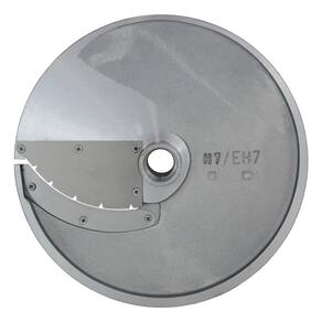 Ideal para o preparo de couve e vegetais em cortes finos, o disco fatiador dentado EH7, com espessura de 7 mm, oferece precisão e rapidez à sua cozinha. Desenvolvido para realizar cortes uniformes tipo "paie", otimiza o tempo e garante consistência, sendo perfeito para cozinhas industriais e profissionais que demandam alto rendimento. Sua lâmina dentada permite tiras finas e uniformes com rapidez e pouco esforço físico, evitando cansaço nas mãos e braços. Além de seguro e eficiente, o disco minimiza o desperdício de alimentos, preserva a textura e o frescor dos ingredientes, e padroniza os pratos, valorizando a apresentação e a qualidade profissional.