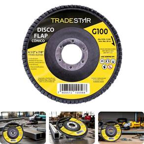 Principais Características do Produto 0 (bullet_point#0): Fabricado em material de alta qualidade e resistência | Principais Características do Produto 1 (bullet_point#1): Ideal para e doméstico | Principais Características do Produto 2 (bullet_point#2): Proporciona maior durabilidade e eficiência no trabalho | Baterias são necessárias? (batteries_required): Não | external_testing_certification:: CE | included_components: Disco Flap 115 mm G100 Fibra Cônico Aço Tradestar | manufacturer: Tradestar | number_of_items: | power_source_type: Manual | required_product_compliance_certificate: CE | unit_count: 1 | number_of_boxes: 1 | material : | model_number: | item_length_width_height: | part_number: | deprecated_offering_start_date : | is_expiration_dated_product: | warranty_description: | item_dimensions: | color: | Voltagem: Bivolt