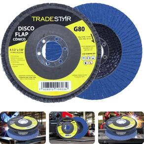 Principais Características do Produto 0 (bullet_point#0): Fabricado em material de alta qualidade e resistência | Principais Características do Produto 1 (bullet_point#1): Ideal para e doméstico | Principais Características do Produto 2 (bullet_point#2): Proporciona maior durabilidade e eficiência no trabalho | Baterias são necessárias? (batteries_required): Não | external_testing_certification:: CE | included_components: Disco Flap 115 mm G80 Fibra Conico Azul Aço e Inox Tradestar | manufacturer: Tradestar | number_of_items: | power_source_type: Manual | required_product_compliance_certificate: CE | unit_count: 1 | number_of_boxes: 1 | material : | model_number: | item_length_width_height: | part_number: | deprecated_offering_start_date : | is_expiration_dated_product: | warranty_description: | item_dimensions: | color: