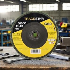 Principais Características do Produto 0 (bullet_point#0): Fabricado em material de alta qualidade e resistência | Principais Características do Produto 1 (bullet_point#1): Ideal para e doméstico | Principais Características do Produto 2 (bullet_point#2): Proporciona maior durabilidade e eficiência no trabalho | Baterias são necessárias? (batteries_required): Não | external_testing_certification:: CE | included_components: Disco Flap 180 mm G60 Fibra Reto Aço Tradestar | manufacturer: Tradestar | number_of_items: | power_source_type: Manual | required_product_compliance_certificate: CE | unit_count: 1 | number_of_boxes: 1 | material : | model_number: | item_length_width_height: | part_number: | deprecated_offering_start_date : | is_expiration_dated_product: | warranty_description: | item_dimensions: | color: | Voltagem: Bivolt
