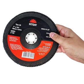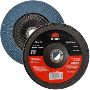 Disco Flap 180 x 22mm para Desbaste Acabamento Htom. Indicado para desbaste e acabamento em aço inox, alumínio, metais ferrosos e não ferrosos com esmerilhadeiras angulares