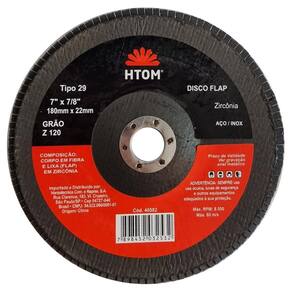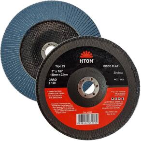 Disco Flap 180 x 22mm para Desbaste Acabamento Htom. Indicado para desbaste e acabamento em aço inox, alumínio, metais ferrosos e não ferrosos com esmerilhadeiras angulares