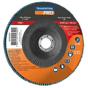 Discos produzidos com lixas de grãos de zircônia, ideais para acabamento e desbaste em aços e metais ferrosos em geral. Modelo cônico com reforços em malha de fibra de vidro. Pode ser encontrado em fibra de vidro ou nylon. A ferramenta certa para você que trabalha em manutenções industriais. Orientações Disco produzido com lixas de grãos de zircônia.Corpo cônico reforçado com malhas de fibra de vidro.Velocidade máxima de trabalho 80m/s - 8500 rpm.Tamanho do grão da lixa: 120.Modelo tipo 29.EM 13743.ISO 15635.Utilizado juntamente com esmerilhadeiras nos trabalhos de desbaste e acabamento em aços e metais ferrosos em geral.Proporciona um excelente rendimento nas operações de acabamento.Todas as ferramentas são produzidas e testadas conforme normas específicas. Observações Use óculos, luvas de segurança, protetor auricular, máscara de proteção contra poeira e vestimentas adequadas de acordo com a tarefa a ser executada.Sempre manuseie e armazene os discos com cuidado.Antes da utilização, faça uma avaliação visual certificando-se que não haja danos ou trincas nos discos.Certifique-se que a velocidade do equipamento não exceda a velocidade máxima marcada nos discos.Utilize flanges de tamanho igual e modelo apropriado para cada tipo de disco.Sempre utilize o protetor de segurança do equipamento.Sempre que utilizar discos novos, antes da operação trabalhe com a máxima rotação, sem carga, por um minuto em área protegida. Tal procedimento tem o objetivo de verificar a integridade dos discos.Utilize apoio para os braços, se necessário.O ambiente de trabalho deve ser ventilado para evitar doenças respiratórias.Não utilize discos que foram expostos a umidade e temperaturas extremas.Não utilize discos que sofreram quedas ou que apresentem danos.No momento da montagem, não force os discos contra o equipamento ou altere o tamanho do furo central.Não aperte as flanges excessivamente.Não fique diretamente em frente aos discos durante a operação.Não utilize os discos para outros fins a não ser para os que foram projetados.Armazene em local limpo e seco. Características Gerais EAN13 7891114157932 DUN14 17891114157939 NCM 6805.30.90 Peso Líquido 0,1800 kg. Peso Bruto 0,1925 kg. Metragem 0,000486 m³. Dimensões Embalagem (Compr. X Larg. X Alt.) 180x 180x 15 mm. Dimensões Produto (Compr. X Larg. X Alt.) 178x 178x 11 mm. Dimensão Extra A 11,3 mm. Dimensão Extra B 180,0 mm. Dimensão Extra C 22,2 mm.