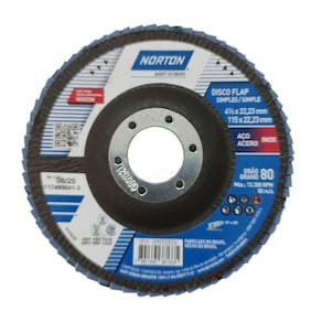 Disco Flap Norton 115mm N 80 Código: 0919 69957320327Medida: 115 x 22,23mmComposição: Aletas de lixa com costado de tecido, Grão NorzonCostado: TecidoMateriais de Corte: Aço Inox, Alumínio, Metais ferrosos, Metais Não FerrososMáquina a ser usada: Lixadeira AngularAplicações: Desbaste de Soldas, Rebarbação, Eliminação de CorrosãoCertificação ABNT NBR: 15230 16245 A imagem do produto é ilustrativa e pode variar de tonalidade e cor de acordo com a configuração de cada monitor.Os objetos que compõem a foto ambientada não acompanham o produto.Fotos meramente ilustrativas. Ean: 7891345381335