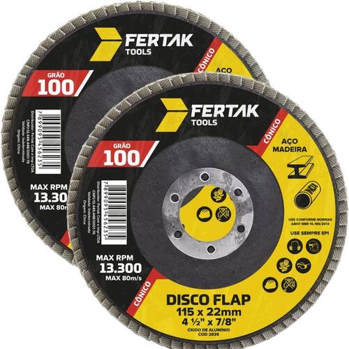 Diâmetro: 115mm Grão: 100 Material: Lixa abrasiva de alta performance. Compatibilidade: Uso com esmerilhadeiras e lixadeiras angulares. Aplicações: Lixamento, desbaste e acabamento em metais, madeiras e superfícies diversas.