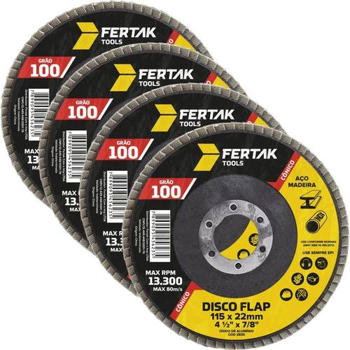 Disco Flap Cônico 115Mm Grão 100 Madeira Aço Desbaste 04 Un