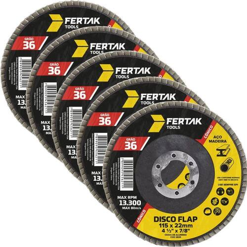 Disco Flap Cônico 115Mm Grão 36 Madeira Aço Desbaste 05 Un