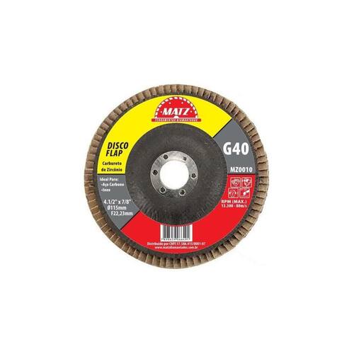 Disco Flap Desbaste Acabamento Grão 40 115X22,23Mm Matz