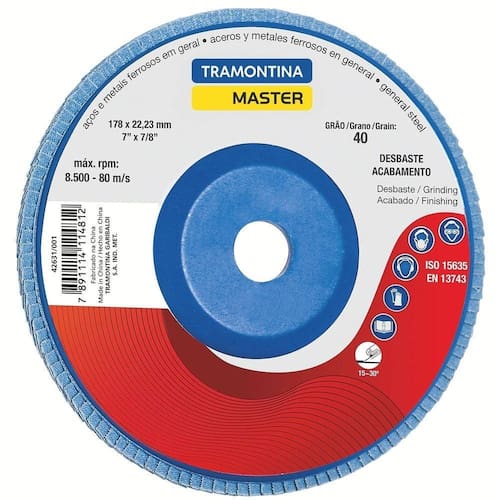 Disco produzido com lixas de grãos de zircônia, Corpo cônico injetado em nylon, Velocidade máxima de trabalho 80m/s - 8500 rpm,Modelo tipo 29, EN 13743, ISO 15635,Utilizado juntamente com esmerilhadeiras nos trabalhos de desbaste e acabamento em aços e metais ferrosos em geral,Proporciona um excelente rendimento nas operações de acabamento,Todas as ferramentas são produzidas e testadas conforme normas específicas.