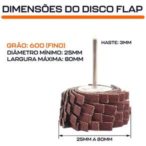 Disco Flap de Lixa 25 a 80mm Grão 600 Haste 3mm para Micro Retíficas Dremax - Marca: Dremax - Modelo: DFE-X600 - Diâmetro externo mínimo: 25mm - Diâmetro externo máximo: 80mm - Gramatura: Grão 600 - Tipo de grão abrasivo: Óxido de alumínio - Folha em óxido de alumínio de alta qualidade: durável, anti-ferrugem e anti-envelhecimento. - Indicado para lixar e polir superfícies irregulares de madeira, plástico, metal e materiais não metálicos. - Diâmetro da haste: 3mm 1/8mm - Haste em aço inox de alta qualidade, durável e prático - Indicado para todas as marcas de micro retíficas, como Dremel, Charbs, Einhell, Black+Decker, Dremax, Mondial, Vonder, Titanium, Western, Ingco, Gamma, Wesco, etc. - : 90 dias contra defeitos de fabricação Marca: Não Informado