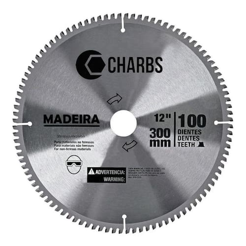 Disco Lâmina de Serra para Madeira 12 Pol. 300mm com 100 Dentes Profissional Charbs A Serra Circular para Madeira 300mm com 100 Dentes da Charbs é ideal para cortes em Madeiras maciças e derivados, com 100 dentes de wídea, acabamento excepcionalmente liso; - Marca: Charbs - Referência: CH00186 - Aplicação: Madeiras e Derivados - Diâmetro: 12'' 300mm - Dentes: 100 dentes - Ângulo de Corte: 4 - Espessura da Lâmina: 2,40 mm - Espessura do Dente: 2,70 mm - Diâmetro do furo central: 30mm - Bucha de redução de 30mm para 25,4mm 1 Pol. - Dentes de wídea com acabamento excepcionalmente liso - Cortes precisos produzindo encaixes perfeitos - Dentes finos que reduzem estilhaços e lascas - Lâmina de aço temperado e endurecido, cortes precisos produzindo encaixes e acabamentos perfeitos - Dentes finos e afiados, reduzem estilhaços e proporcionam facilidade no uso - Indicada para uso com Serra Esquadria para o corte de Madeira em serralherias, marcenarias, fábricas de móveis, entre outros - Proporciona corte suave e rápido - Indicado ara serras Dewalt, Bosch, Makita, Black e Decker, Vonder, DWT, Tramontina, etc - Garantia: 90 dias contra defeitos de fabricação