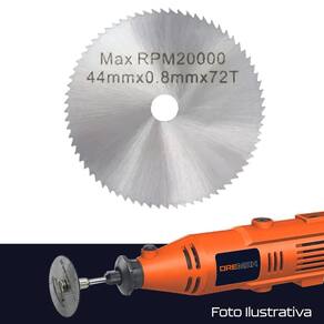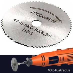 Disco Lâmina de Serra 44mm para Micro Retíficas Multimarcas Dremax - Marca: Dremax - Referência: LS008 - Material: Aço Rápido HSS - Diâmetro: 44mm - Espessura: 0,8mm - Número de dentes: 72 - Diâmetro do furo: 1/4 6,35mm - Ideal para o corte de materiais duros como madeira, plásticos, laminados, alumínio, etc - Indicado para uso com furadeiras e micro retíficas de qualquer marca Dremel, Charbs, etc - Para uso com suportes de lâminas de serra com furo de 1/4 Pol. - Adequado para uso em Carpintaria e artesanato - Para sua segurança, aperte bem o parafuso da haste - Velocidade máxima de operação: 20.000 rpm - Garantia: 90 dias A DREMAX é a primeira e única marca brasileira dedicada exclusivamente às micro retíficas, acessórios e acoplamentos para esta indispensável ferramenta. Seja para trabalhos de precisão, artesanato, modelagem ou reparos, a DREMAX tem o produto certo para você. Marca: Dremax