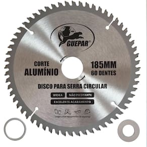 A Lâmina de Serra Circular 185mm da Guepar é ideal para cortes em alumínio, produzindo encaixes perfeitos. Fabricada com 60 dentes de vídea finos que reduzem estilhaços e lascas