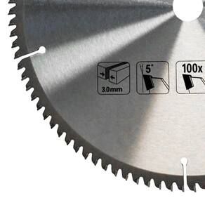 Seu ângulo de dente de 5 combinado ao formato TCG permite maior durabilidade da aresta de corte, tornando-a excelente para cortes em materiais abrasivos e com camadas protetoras, como painéis melamínicos. A espessura de corte de 3 mm garante robustez e desempenho mesmo em operações contínuas, enquanto o corpo da lâmina com 2,2 mm de espessura oferece estabilidade e menos vibração.